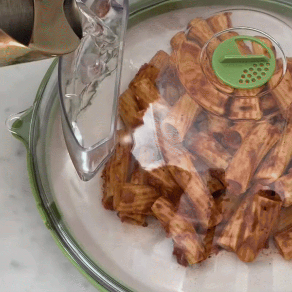 "De magnetronhoes is superpraktisch, want hij houdt mijn magnetron schoon en zorgt tegelijkertijd voor gelijkmatig verwarmd eten. Ik ben vooral dol op het geïntegreerde waterreservoir, dat de gerechten lekker sappig maakt!"