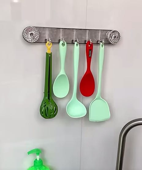 Deze haken zijn ideaal voor de keuken. Mijn pollepels hangen netjes en binnen handbereik.